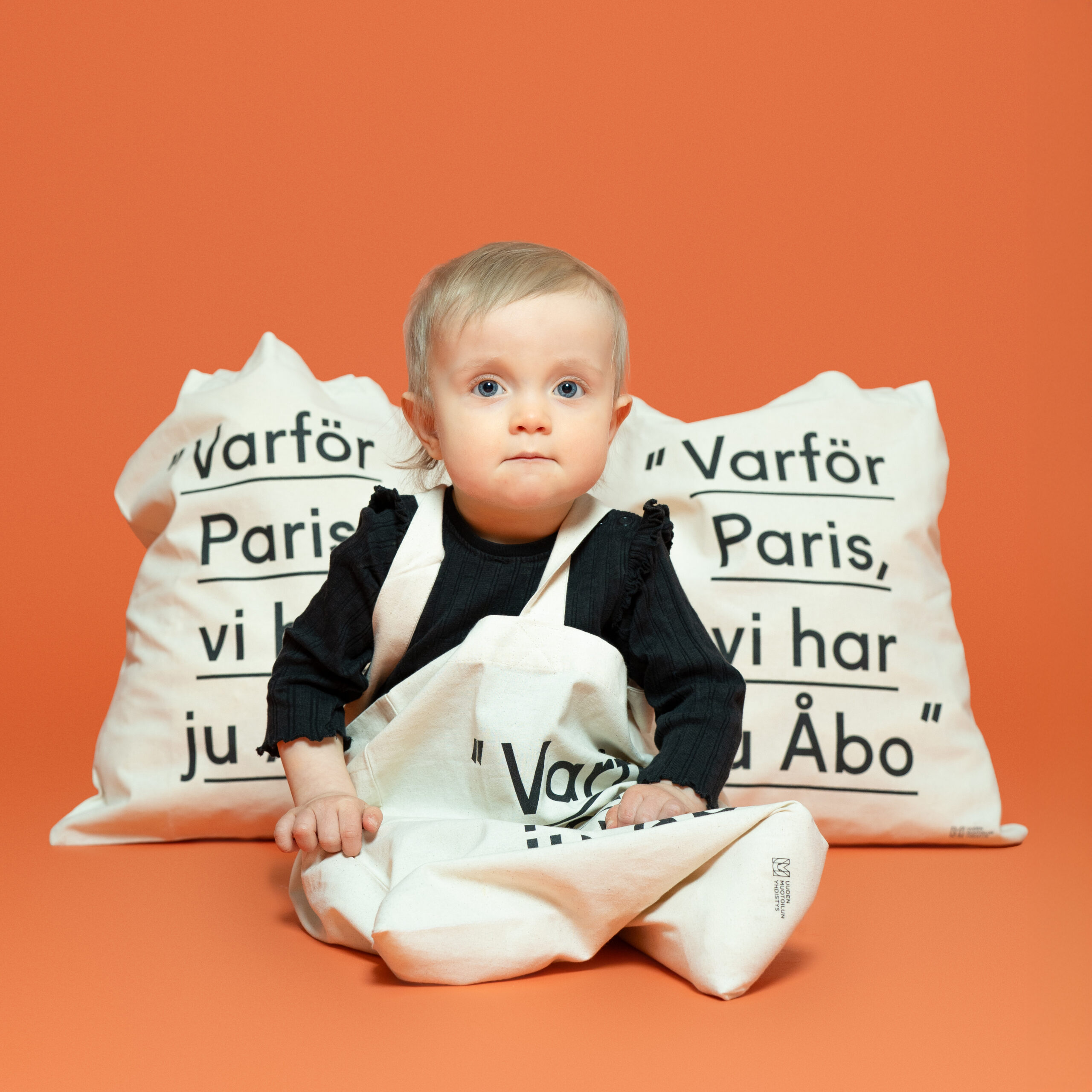Valkoinen kangaskassi "Varför Paris, vi har ju Åbo" tekstillä.