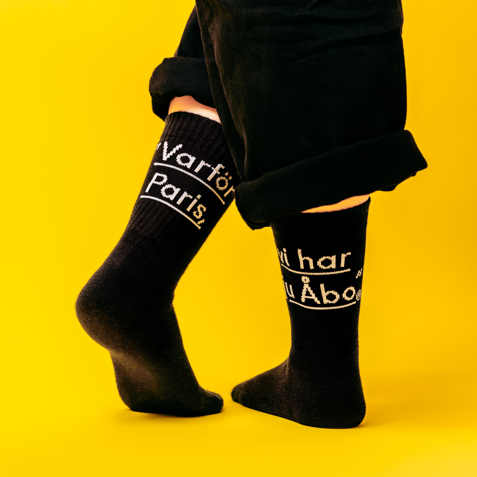 Kotimaiset tennissukat ikonisella Varför Paris, vi har ju Åbo-sloganilla. Puuvillaiset tennissukat valmistaa Sidoste Tampereella!